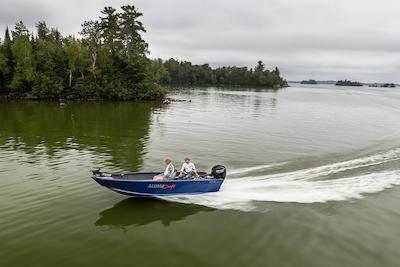 If you want to zip around the lake the Alumacraft Escape 165 CS lists at $19,591 with its top-end powerplant, a 50 HP outboard with power trim and tilt. And although the Escape 165 CS is one of Alumacraft’s smaller models, it still has their 2XB twin plated bow with double thickness from the bow to amidships, a hardened center keel, and spray rails.